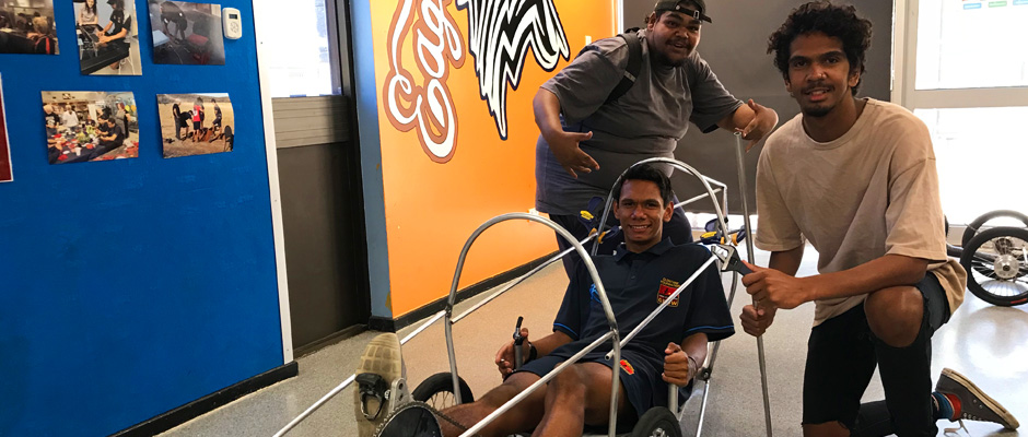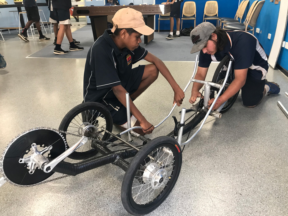 “We’ve been riding around on the roads in Alice Springs and building up the riders confidence in the trike.” James explained. “One of the lads tipped over our prototype trike early on, and they’ve been pretty reserved since then!”