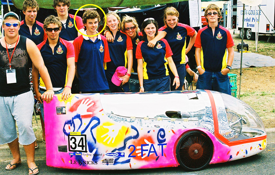 Steele was involved in the Energy Breakthrough over three years with Mt Martha Primary School and The Peninsula School between 2002 – 2004. He was also an exceptional rider for Community Teams, winning the Australian International Pedal Prix on a number of occasions, too. (We hope he won’t mind too much, pictured above here, fifth from the right in 2004)