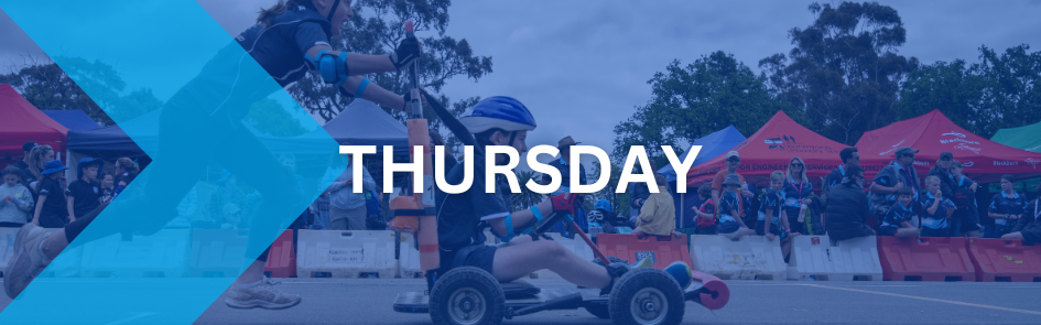 🏆Pushcart teams will be in action all day: Design & Construction, Obstacle, Endurance and Sprint events before our first Awards Ceremony of the week at 3:30pm.
