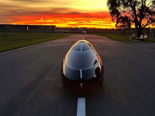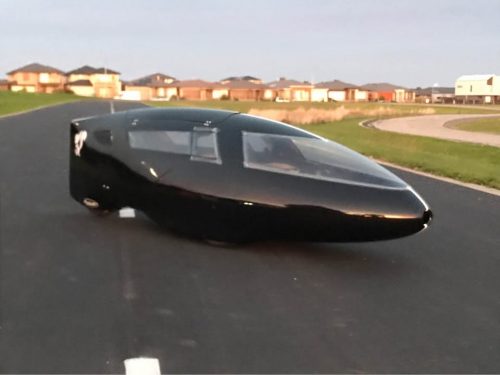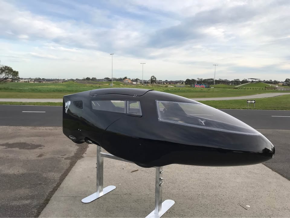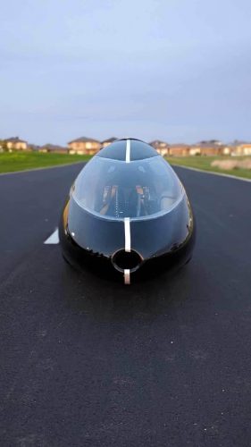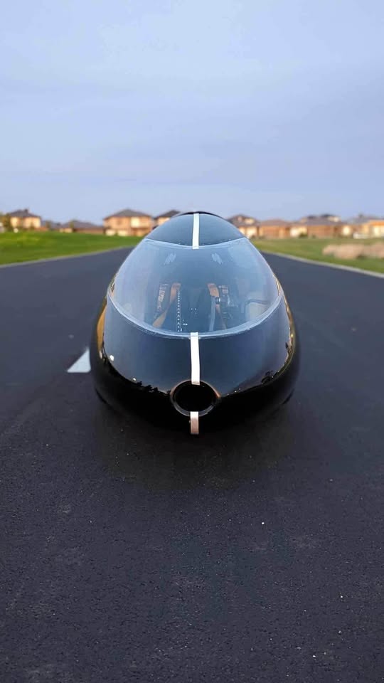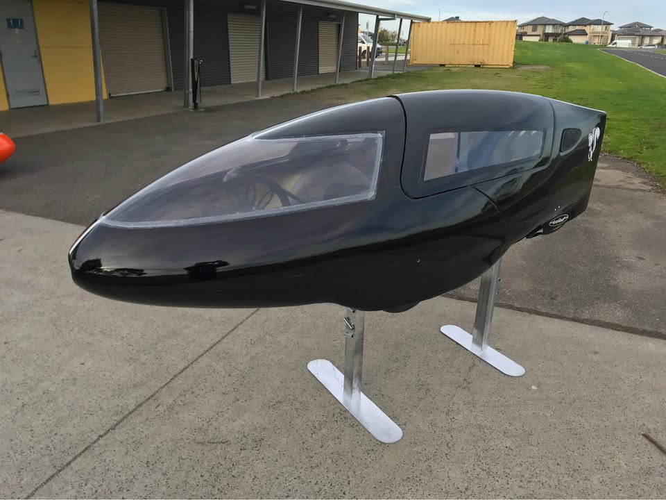 Much loved by the team. This vehicle has only raced four events in the Victorian 2024 season. Extremely fast & exciting to ride racing HPV. Full carbon/Kevlar composite body. The body of the shell has a replaceable nose cone for when replacement or repairs need to be done. This vehicle is sized for secondary or community teams. It is running 16” wheels all around, disc brakes, 10spd cassette, & a 90T chainring.