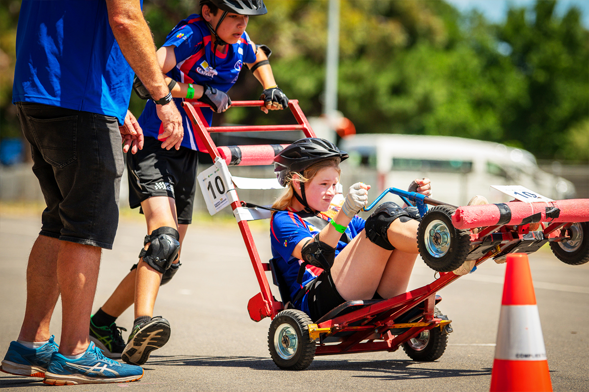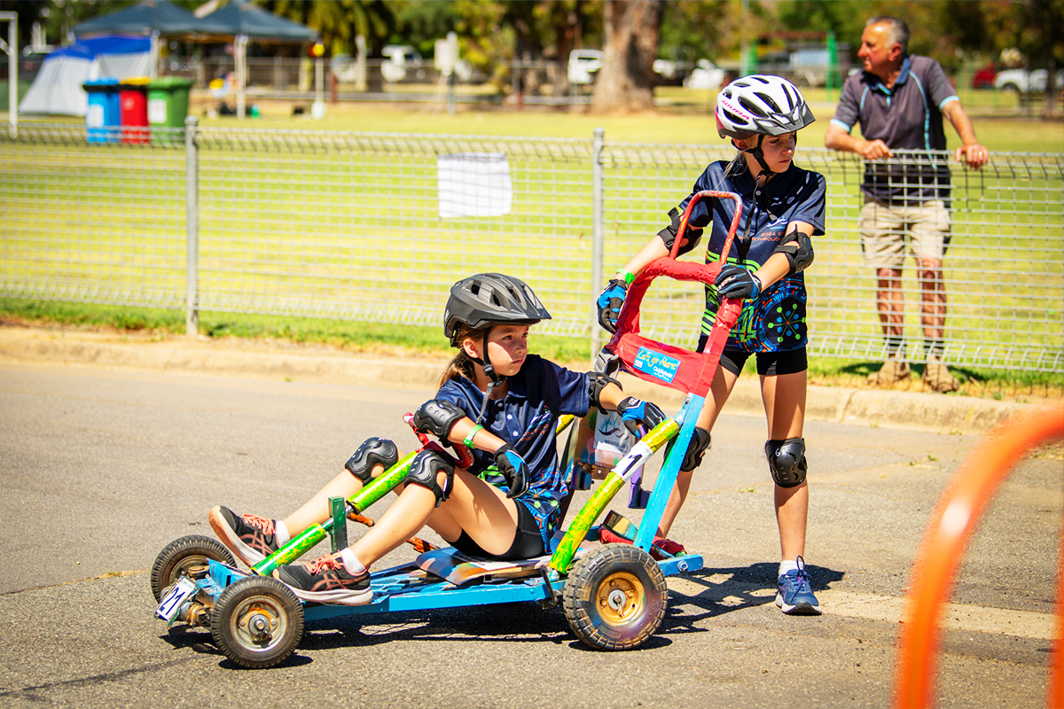 The Pushcarts program at the Energy Breakthrough introduces primary school level children to our event with a machine based on a human-powered billy cart.